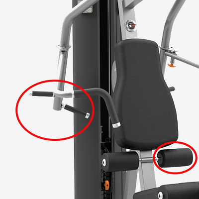 Los agarres están colocados ergonómicamente, derechos y en ángulo, para promover la posición correcta de las muñecas durante los ejercicios de tracción. Las almohadillas para las piernas brindan soporte asegurando una posición correcta para variedades de ejercicios.