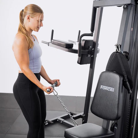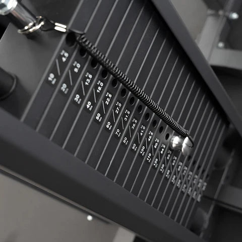 Con dos torres de pesas de 90 kg (200 lbs) con pasadores, el MG4 se adapta a todos los niveles de entrenamiento. La fácil selección con pasadores y las cubiertas de acero de alta calidad alrededor de la columna de pesas no solo ofrecen seguridad, sino que también garantizan durabilidad por años. Este gimnasio está diseñado para resistir el paso del tiempo y el rigor del uso diario.