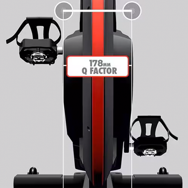 Un factor Q de 178 mm hace que tu bicicleta de interior se sienta más como una bicicleta de exterior. Además, aumenta la seguridad, la comodidad y la eficiencia.