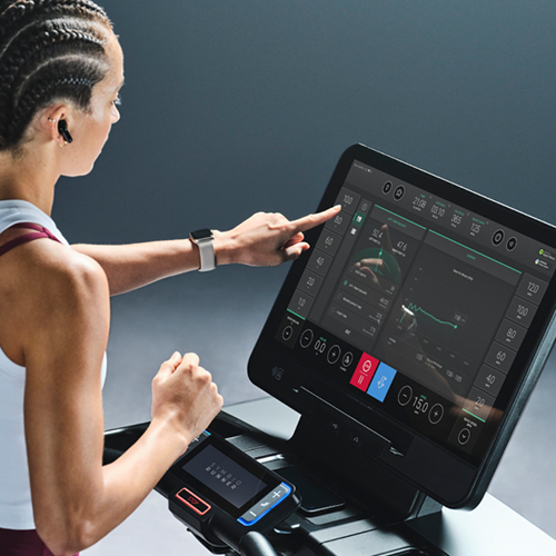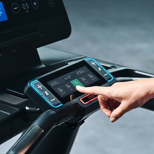 Nuestro panel de control LCD de un solo toque con teclas rápidas personalizables está diseñado para ofrecer la máxima comodidad y una experiencia de entrenamiento óptima. Puede cambiar la firmeza de la plataforma o ajustar la velocidad y la inclinación sin interrumpir el entrenamiento.