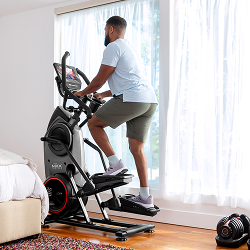 El Bowflex Max Trainer M9 ofrece cardio integral que te reta a darlo todo. Basado en el Entrenamiento Interválico de Alta Intensidad, Max te guía a través de breves ráfagas de esfuerzo de alta intensidad seguidas de periodos más largos de recuperación de baja intensidad. Accede a JRNY™ y disfruta de una experiencia de entrenamiento personalizada, entrenamientos adaptables, videos guiados por entrenadores, más de 40 rutas globales y acceso a tus cuentas de Netflix, Hulu, Disney+ y Amazon Prime Video en la pantalla táctil HD.²